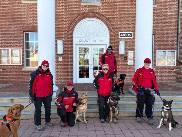 CK-9 called out at 1510 on 27 Mar 2024 by MSP for a 59YOF Dementia missing since early morning. We deployed 4 live find area search dog teams with 6 flankers. They arrived on site at 1700, got task assignments, but just before deploying were notified another MSP search team had made sad find.